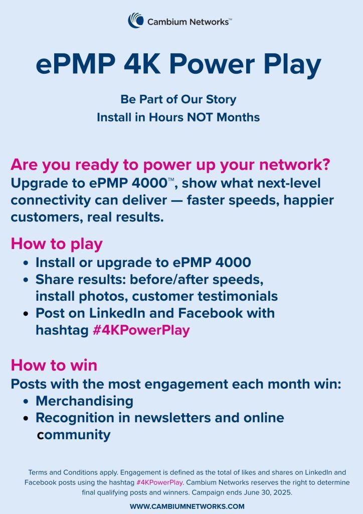 Kampania polega na zaprezentowaniu efektów wdrożenia ePMP 4000 w sektorze sieci w mediach społecznościowych i oznaczeniu ich #4KPowerPlay.